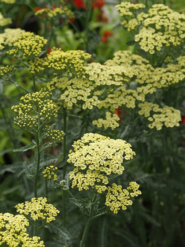 Like a cream flowered Achillea 'Moonshine'. Evergreen grey foliage and creamy yellow flowers May-Aug, 60cm. Sun.