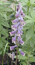 White flowers shaded with cream at the mouth and dusky violet on the spur May-Jul, 55cm.