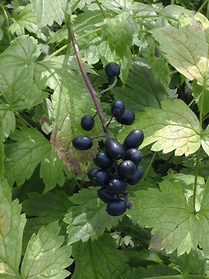 Sprays of shining black berries Aug-Nov, 30cm. Dry shade.