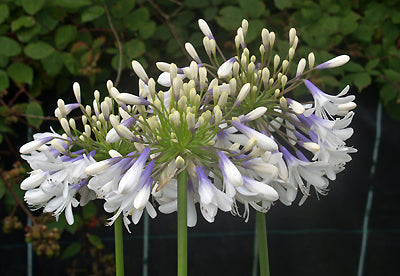 Tall straight stems with full heads of amethyst-flushed bases to white flowers Jul-Sep, 1.1m.