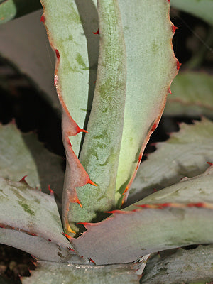 Impressive broad-leaved rosettes wider than tall, each leaf has orange teeth from teats along the margins. Collected from 5000feet altitude, Sierra Mixteca, Mexico. Probably hardy - especially considering its provenance.