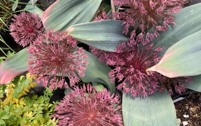 12cm. wide heads of dense dark flesh pink flowers Apr-May, grey foliage good at anthesis, 30cm. Afghanistan and Tadjikistan, similar to Allium karataviense with better flowers.