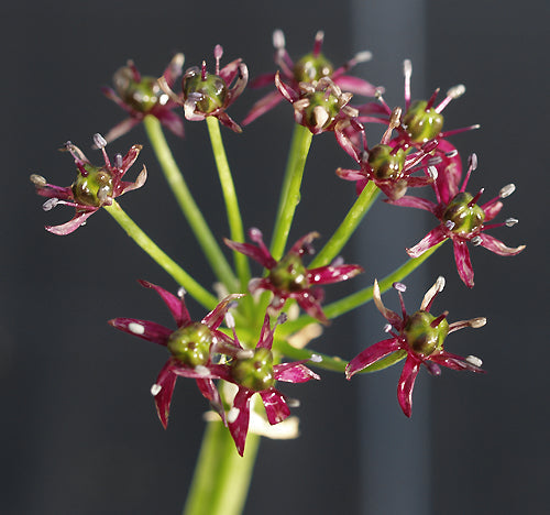 Deep purple flowers with green middles mid to late summer Jul-Aug and later, 40cm. Leaves good at anthesis.
