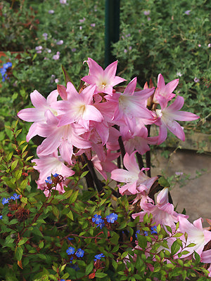 Astonishing soft sugary pink trumpets Aug-Sep, 75cm. Plant against a SW wall (which should be warm and wet). Probably a named cultivar but name unknown.