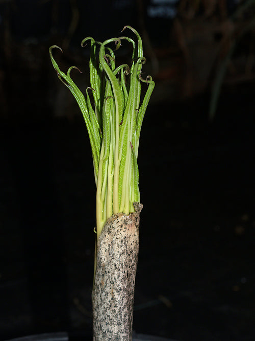 Voodoo Lily. Large up-facing pale green spathe May-Jul followed by one pinnately divided green leaf from a spotted cataphyll, 75cm. Theoretically hardy to Z7a but needs more summer heat than Britain usually provides. India and Nepal.