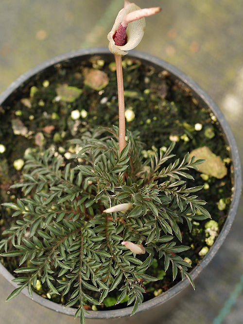 Miniature ferny foliage together with a tiny white flower Jun-Aug, 10cm. Tender. Discovered in 2004 and described in 2006, in the Khammouane Province of Laos by Alan Galloway and Annop Ongsakul.