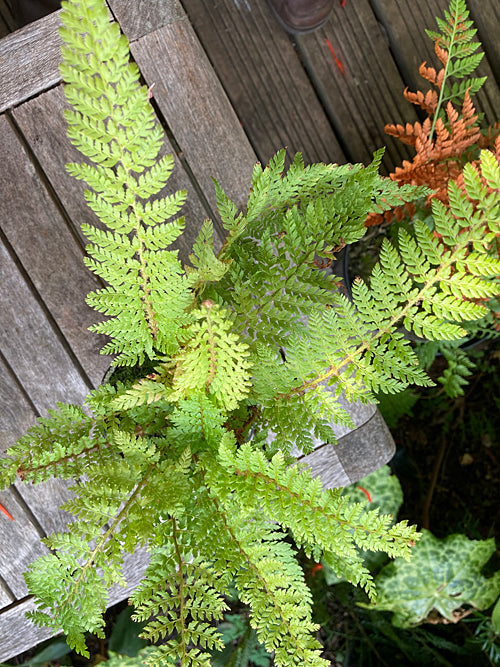 Synonym of Polystichum tripinnatum. Slender 3-pinnate fronds - the frond separate and clearly seeable, 45cm. India.