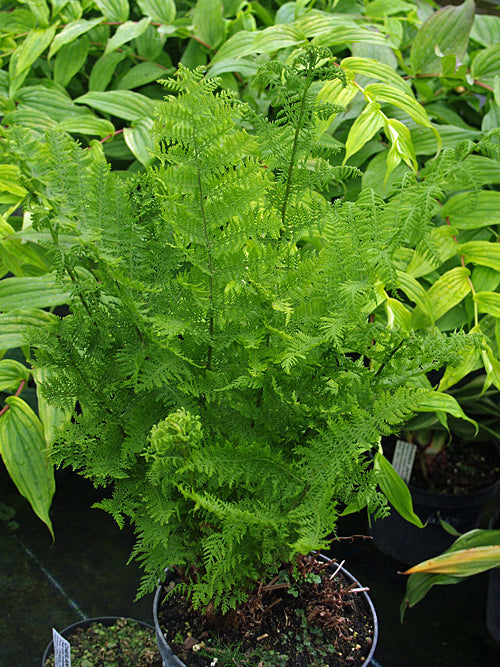 Soft very lacy fern 3-4pinnate the pinnae slightly imbricated, 60cm, deciduous. Shade.