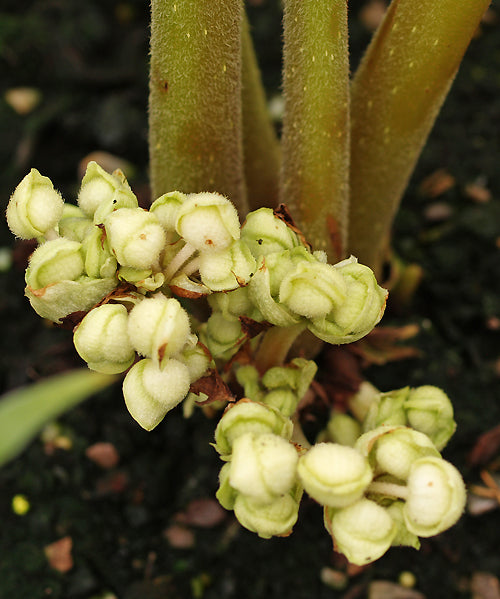 White night-scented flowers arise at the base before it leafs May-Jun, enormous green foliage, 60cm. Newly described subspecies from Yunnan.