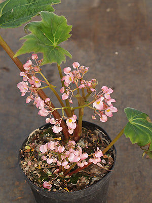 Probably hardy. Loose sprays of chalk-pink flowers with darker pink veining Aug-Nov arise independent of the foliage from the soil, amazing jagged and cut coloured foliage, neat 25cm. 2200m.altitude, China.