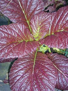 Red mustard greens. Ornamental large red-stained foliage over winter Oct-May.