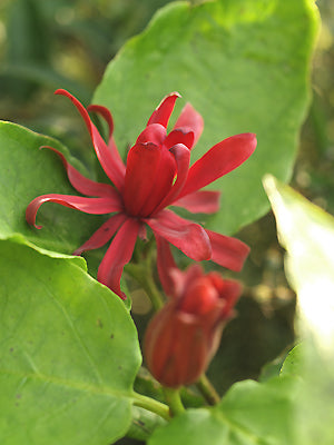 Hardy deciduous shrub related to winter-sweet. Large many-petalled fragrant red-brown flowers May-Jul, deciduous, 2-4m only. Seed collected 4775 feet altitude, Sierra Nevada, Fresno Co, CA.