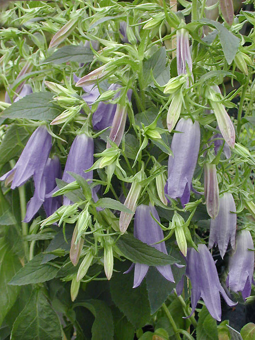 Large beautifully shaped grey-blue bell flowers over a long period May-Oct, 55cm. Easy.