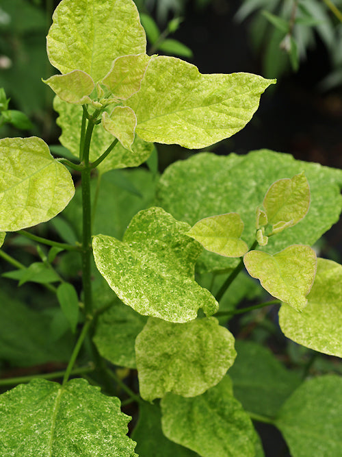 Indian bean tree. Can be stooled for large foliage (2m.) or left to make a small tree (4m.). Late-appearing soft cream-speckled leaves, heads of ivory white foxglove-like flowers marked with yellow and violet Jun-Jul.