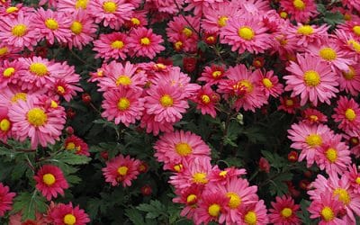Deep pink flowers age paler Oct-Nov, bushy, 60cm.