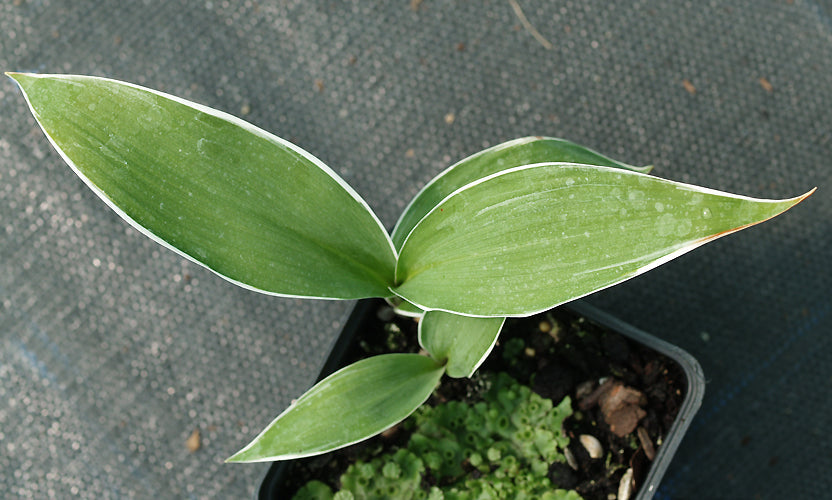 Long cream-edged foliage, cream flowers May-Jun, 18cm. Japan.