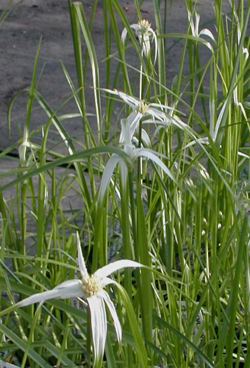 Star sedge. White-headed inflorescence Jul-Nov, 65cm.Synonym Rhychospora latifolia. Runs a bit. Good for drying. Not for dry sites, also grows in water. Dubbed ,"Paraquatia" by Pam Schwerdt.