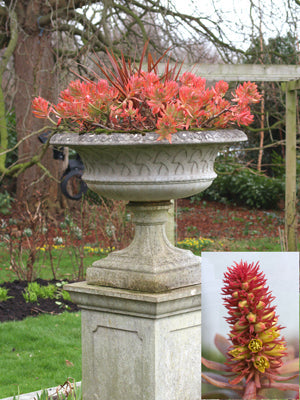 Hardy winter-flowering perennial. Large thick spikes of stunning deep coral-red sepals - this colour bleeding down the stem into the foliage overwinter outside Dec-May, 30cm. The plant needs cold to colour-up in winter. An epiphyte in the wild.