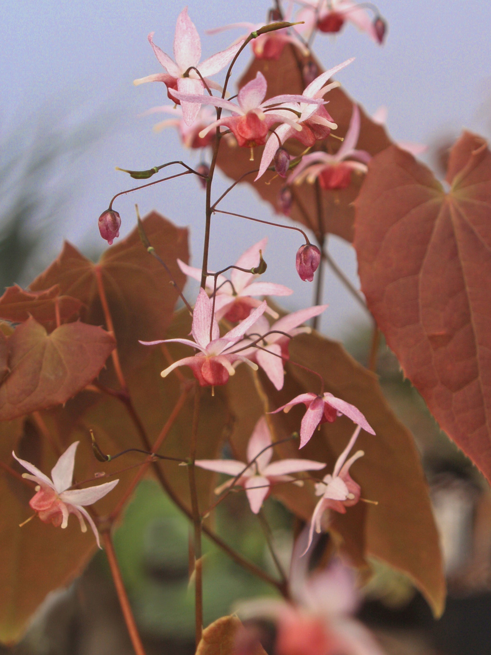 Pretty clouds of small almost true pink flowers (ie pale red) the centres deeper in colour Mar-May and intermittently till late autumn, 35cm. PVR - propagation for resale prohibited. A Robin White cultivar.