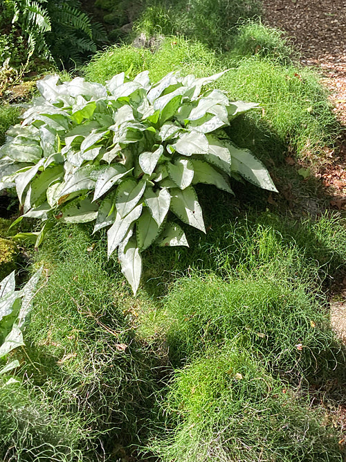 Curving wiry scouring rush. Evergreen tangle of narrow stems, 30cm. Invasive if you are lucky! NE Europe.
