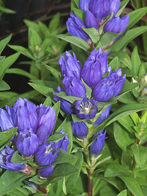 Thick heads of up-facing deep blue flowers from dark stems Aug-Oct, 40cm. Herbaceous perennial. Lime-tolerant? Nice soil with generous organic content. PVR- propagation for resale prohibited.
