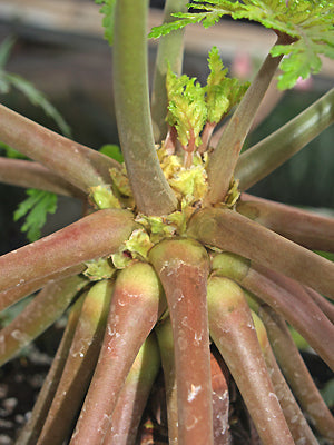Tender perennial, dramatic divided pinkish leaves and a cloud of pink flowers May-Jul, 85cm. Magnificent for its flowering season and good in leaf.