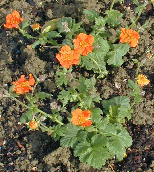 Nice neat up-facing soft orange flowers from dark stems Jun-Jul, 35cm. Easy.