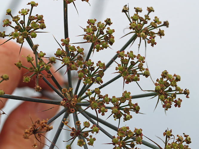 Rosettes of glaucous blue-shaded dark green pinnate foliage - the pinnae crenulate to sub-pinnate. Seed collected between Yayladagi and Topratutan, Hatay, ultramafic soils. Formerly wrongly called Echinophora.