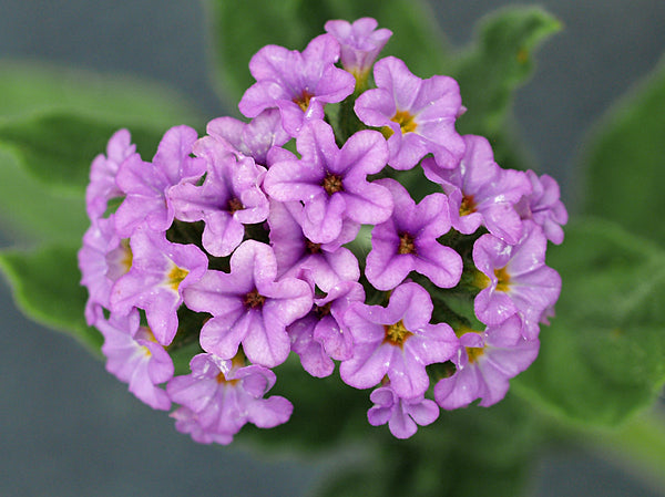 Hardy perennial heliotrope. Deep lavender flowers Jun-Oct, 25cm. Argentina. Good in dry conditions.
