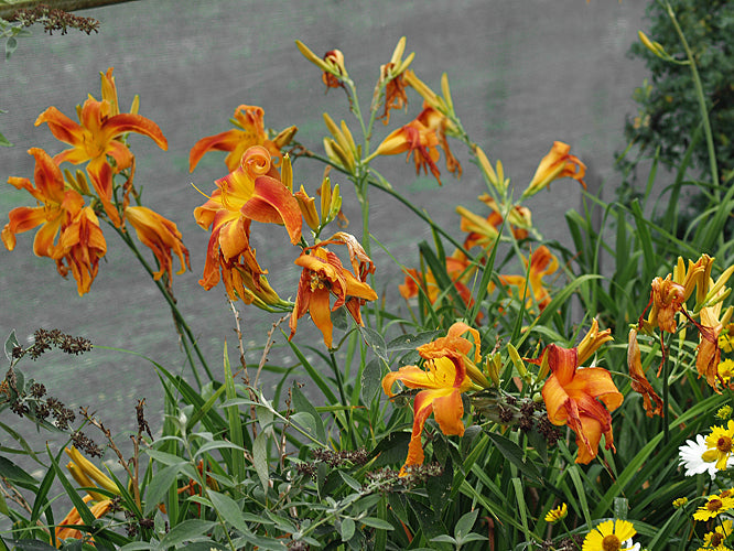 Striking large orange and yellow spider flowers Jul-Aug and Sep-Oct, 75cm.