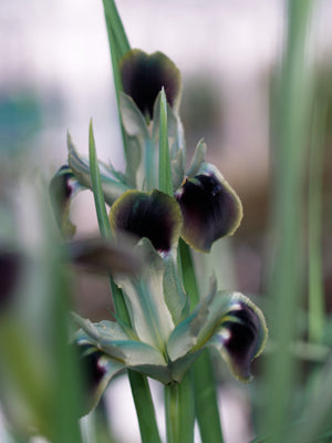 Scented violet-black and grey iris-like flowers early Mar-May, 25cm. Limy dry soil, don't crowd, sun. Good for picking. Crete, Agios Varvara.