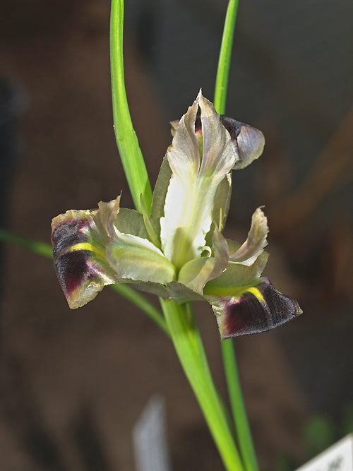 Scented grey-black iris-like flowers early Mar-May, 25cm. Limy dry soil, don't crowd, sun. Good for picking. Greece, Attica, Loutraki.