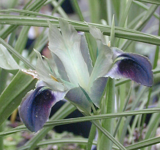 Scented grey, lilac and turquoise (not the usual black and green) iris flowers early Mar-May, 25cm. Limy dry soil, don't crowd, sun. Good for picking.
