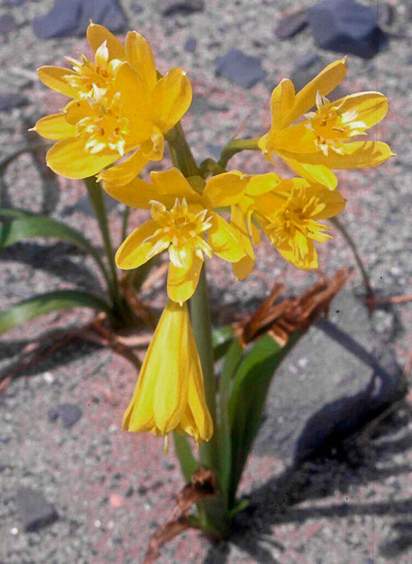 Umbels of 5-10 large highly fragrant yellow daffodil-like flowers with the trumpet flared and split at the mouth Jul-Sep, 55cm. Loam compost in deep pots. Seed collected S of Poma, Salta province, Argentina, 2800m altitude. Hardy if bulb planted deeply.