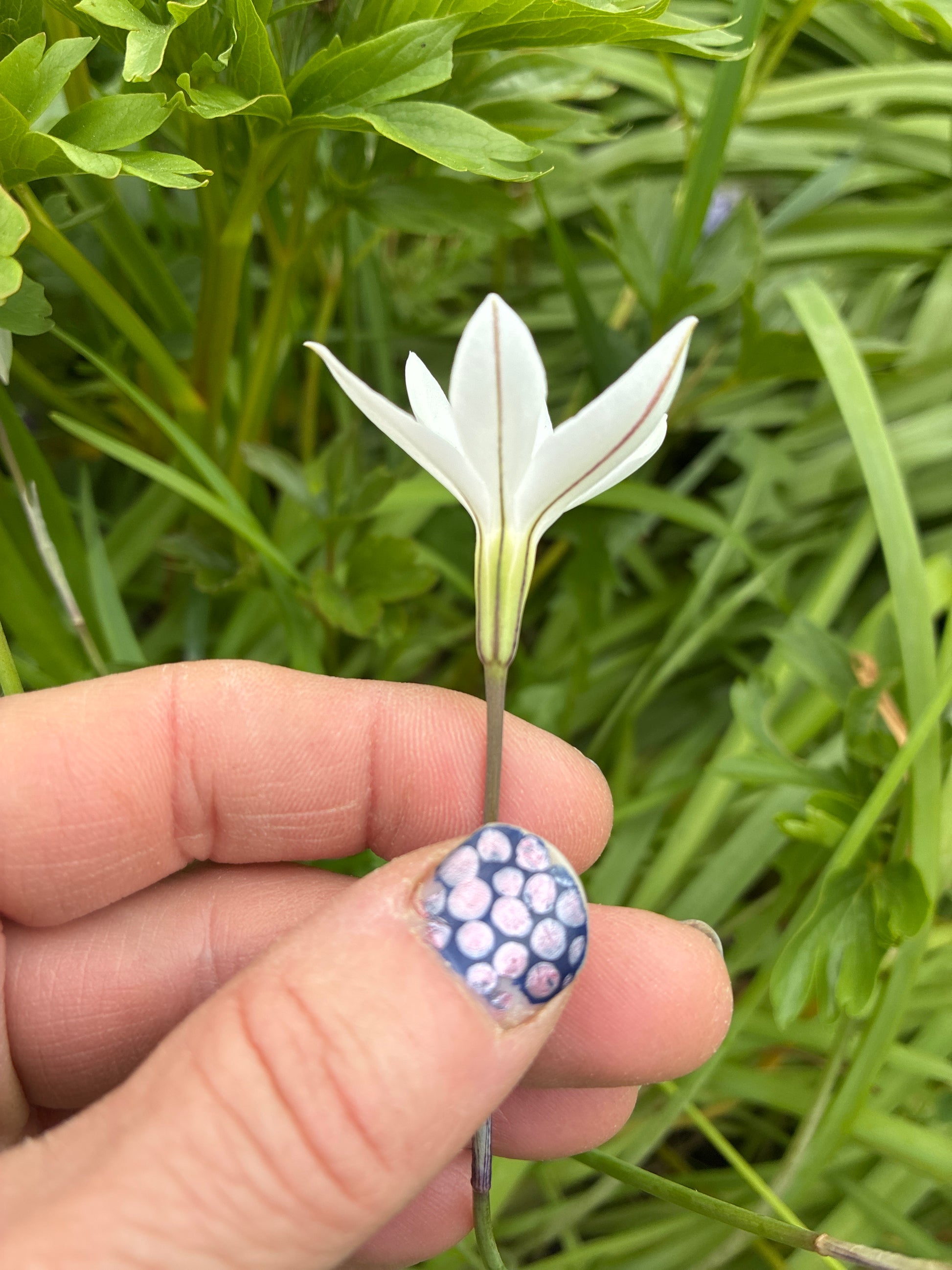 AS SEEN ON GARDENERS’ WORLD April 2026. We’ve been selling this Ipheion for 31 years - an old favourite of ours! Distinctive large violet-scented white flowers (Nov)Feb-May amongst grey garlic-scented leaves, 18cm. Easy (even in our heavy clay), special.