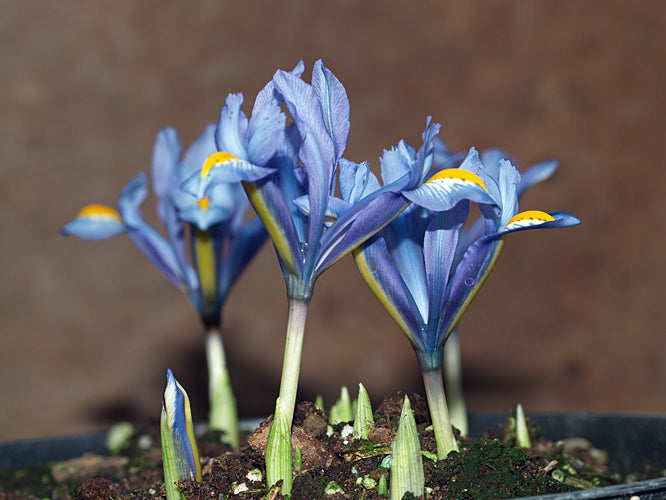 Exquisite early neat blue flowers Nov-Jan, 10cm. From Hyrcania. Aha! Where's that? The weird wet and misty mountains rising out of the semi-desert at the southern end of the Caspian Sea.