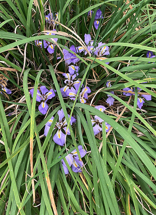 Winter iris. Mauve-blue flowers amongst the grassy foliage Dec-Apr, 30cm. In wet places it needs a dry site. On clay grow Iris lazica instead.
