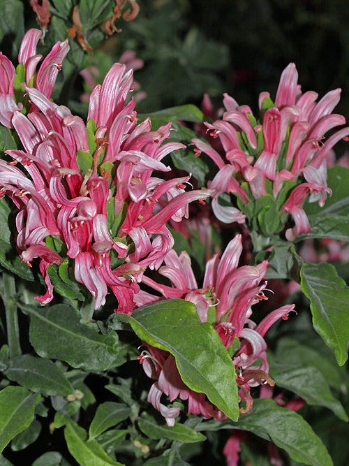 Fat upright terminal clusters of pink flowers Jun-Nov, greyish-green foliage, 85cm. Prune hard in spring to make them compact.