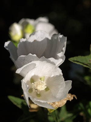 Lovely white flowers Jun-Sep, 45cm. Easy but not dry shade. Seeds around too much.