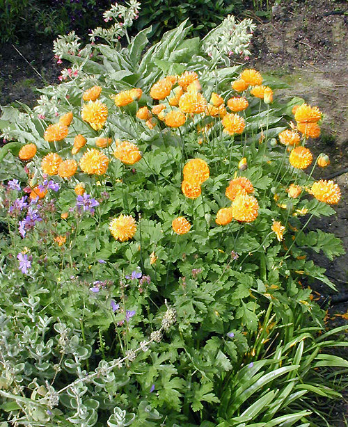 Large double apricot-yellow flowers May-Jul and later, 30cm. Easy.