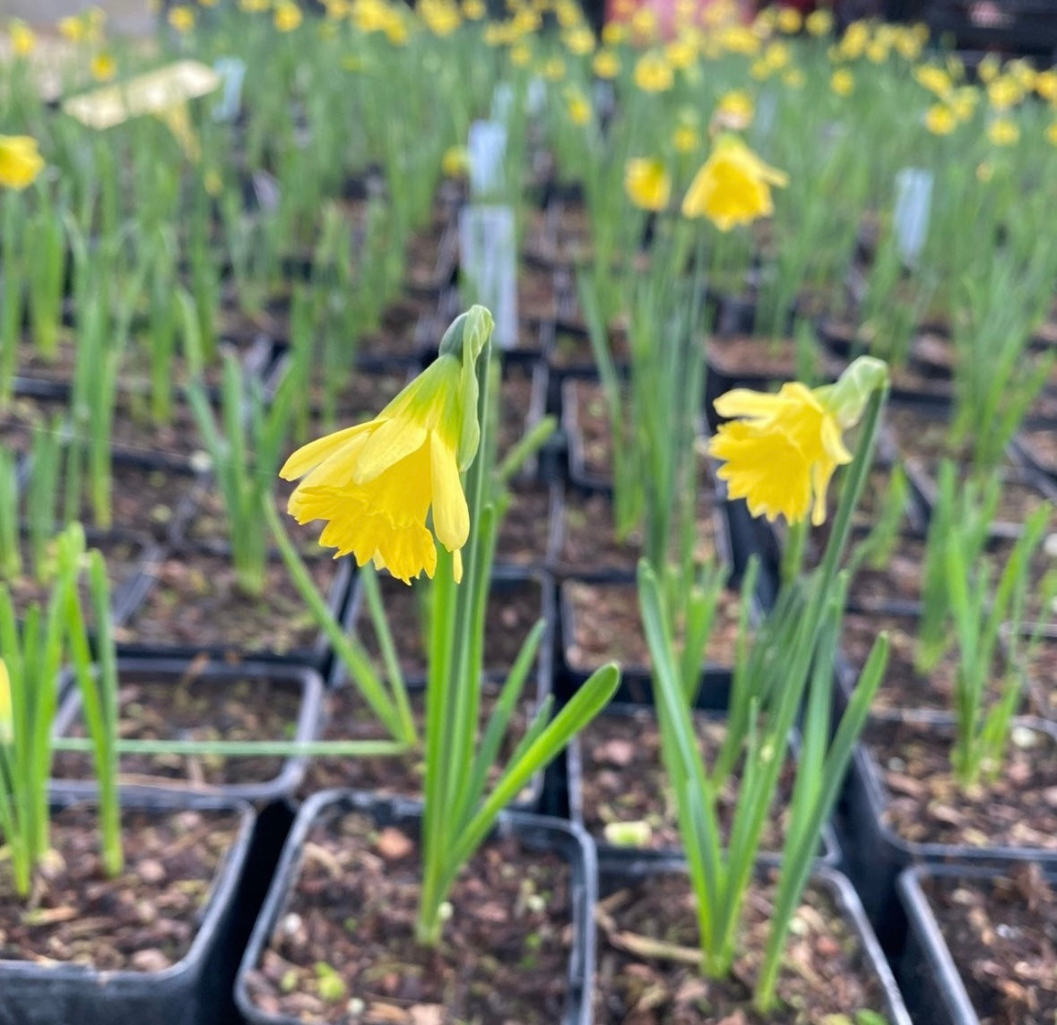 They showcase vibrant yellow petals with a unique green blotch on the outer edges, creating a striking appearance. Perfect for borders, rockeries, or naturalising in grass, these hardy daffodils reach a height of approximately 28cm.