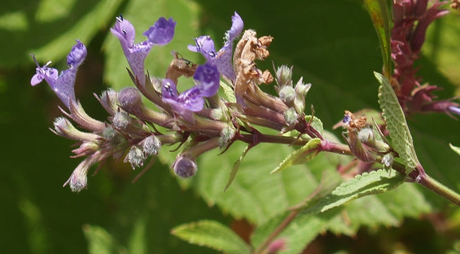 Tall bushy plant, deep lavender flowers Jul-Oct, grey-green foliage 1m.