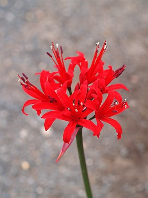 I wonder what the colour will be! Deep pure almost blackish red flowers on very sturdy vertical stems even with sidelight, Sep-Oct, 60cm.
