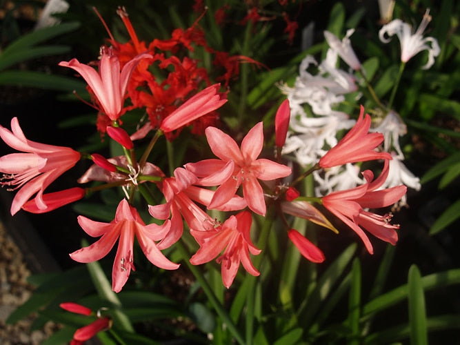 Wide un-crisped salmon tepals in a trumpet shape Sep-Nov, 60cm.