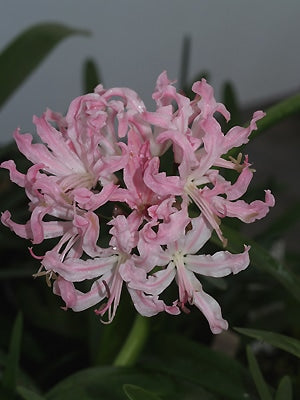 White flowers with a pink mid-rib and pink ends to each petal, Oct-Dec, 55cm.
