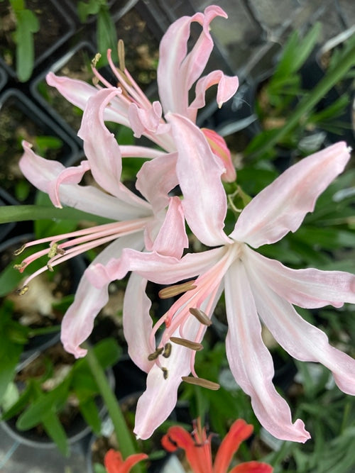 Large open flowers almost white with a pale cerise tip to the tepals Sep-Nov, 50cm.