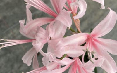 Heads of wavy pure pink flowers with darker throats Sep-Oct, nice grey-green leaves, 60cm.