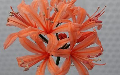 China-rose flowers with a darker midrib on each tepal and a deeper rose throat Sep-Nov, 50cm. A more tender sarniensis hybrid than N.bowdenii 'Stefanie'.