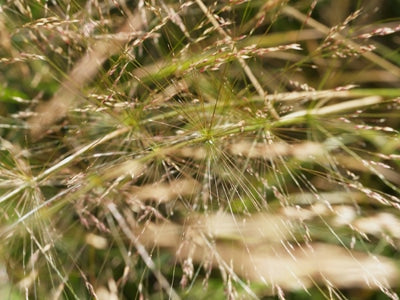 Oryzopsis miliacea is an exceptionally graceful ornamental grass, producing some of the most elegant flower structures in the garden. From June all the way into February, it sends up airy, whorled flower heads that sway like a delicate Restio or fine horsetail, creating soft movement and a refined silhouette in any planting scheme.
