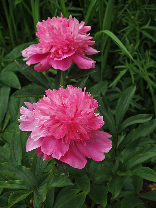 Well-filled, even, dark rose-pink anemone-double flowers with good foliage (May)-Jun-(Jul) (later than many), 80cm. The flowers manage an amazing apparent translucence which may be due to traces of yellow in their centres. Bigger, 1954.